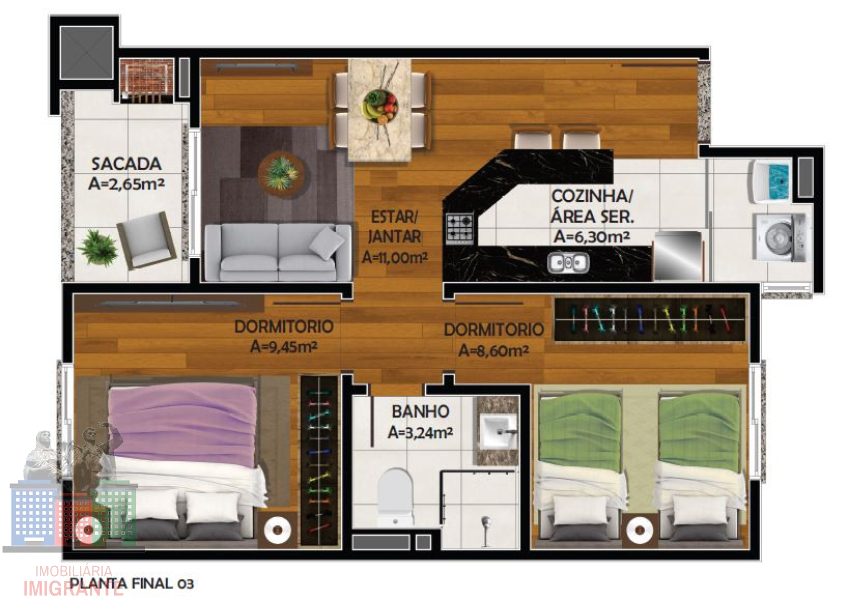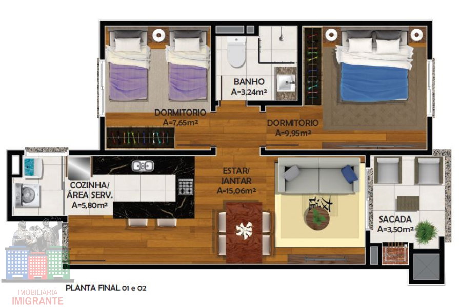 02 dormitórios,